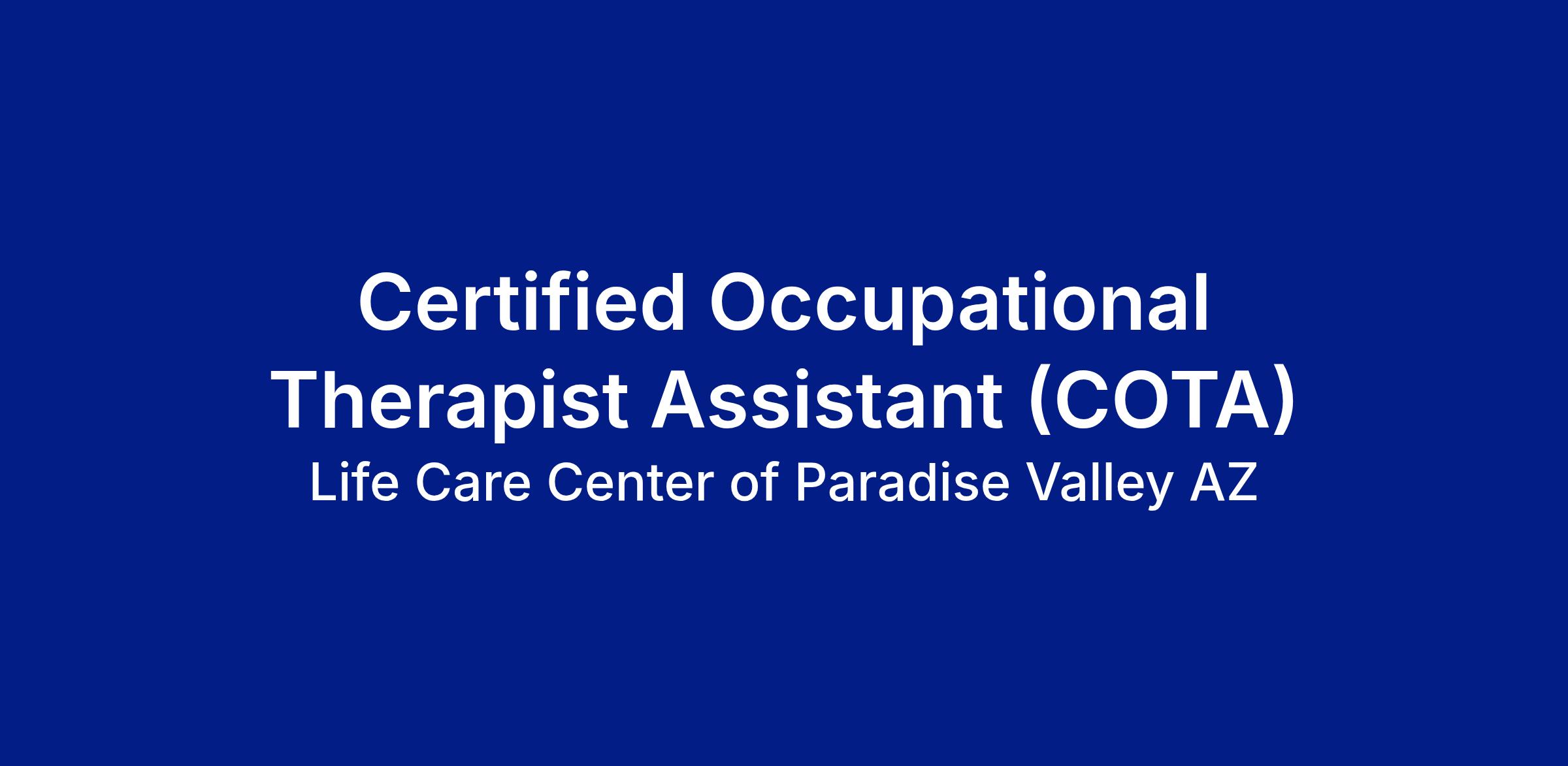 The COTA Certified Occupational Therapist Assistant provides direct rehab care in occupational therapy to patients upon physician referral under the supervision of a licensed Occupational Therapist (OT) in accordance with all applicable laws, regulations, and Life Care standards.
