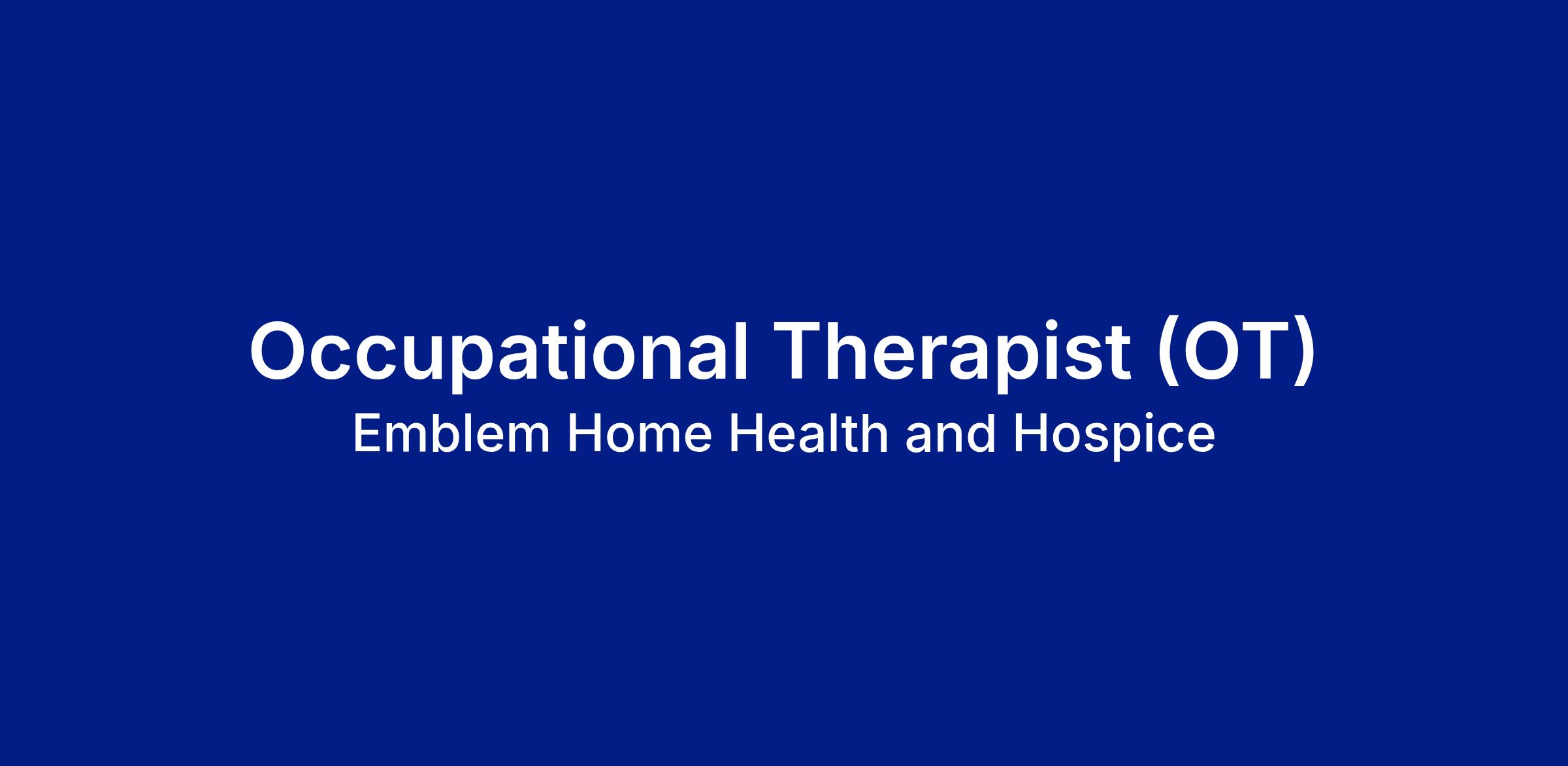 Occupational Therapist. Life-Changing Work with a Flexible Schedule! Find the perfect balance between your career and personal life while helping patients regain independence. As an Occupational Therapist (OT) in home health care, you’ll create personalized treatment plans, teach adaptive skills, and collaborate with a caring team, all with the flexibility you deserve!