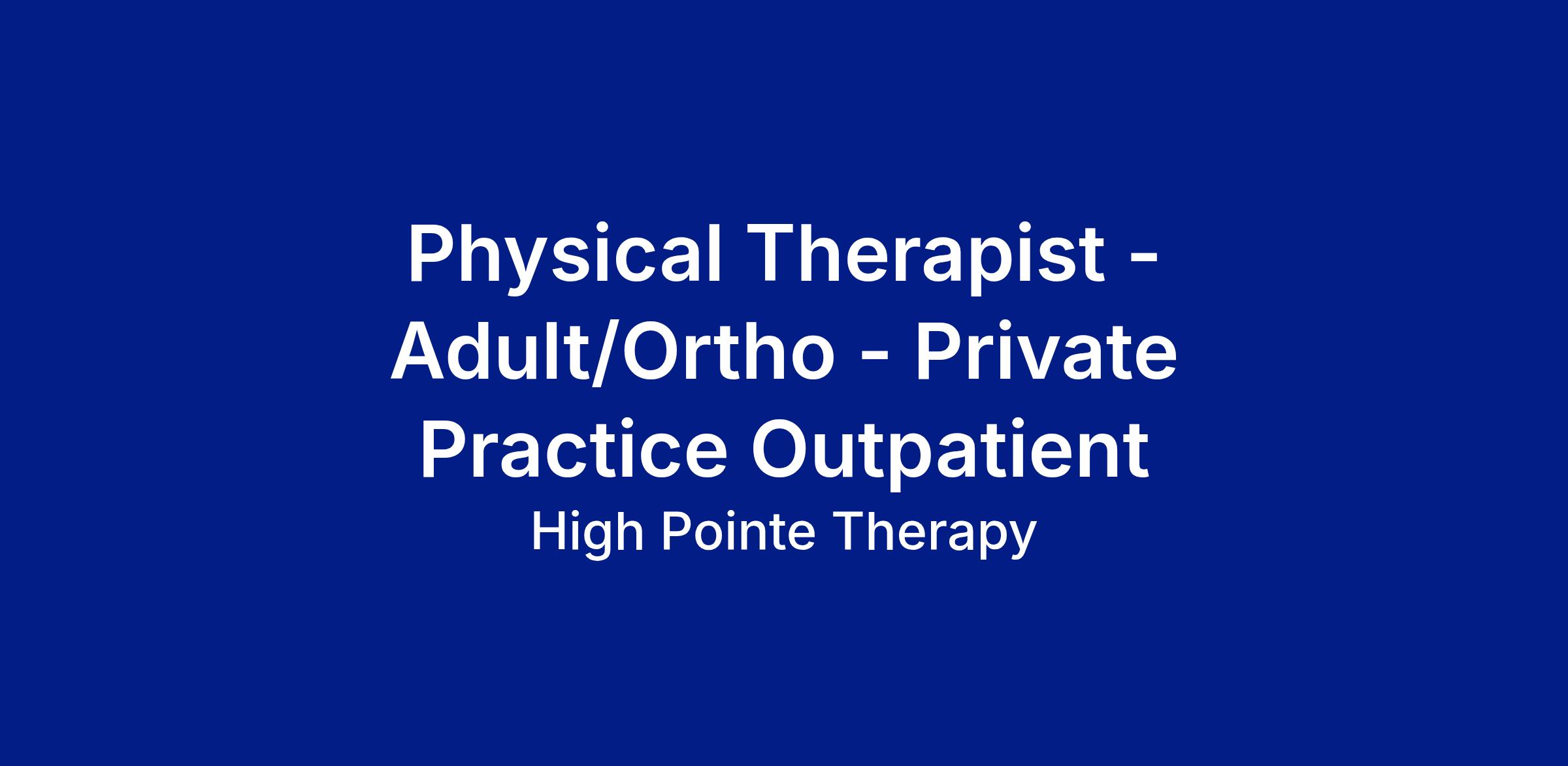 Join High Pointe - A Different Kind of Physical Therapy Practice