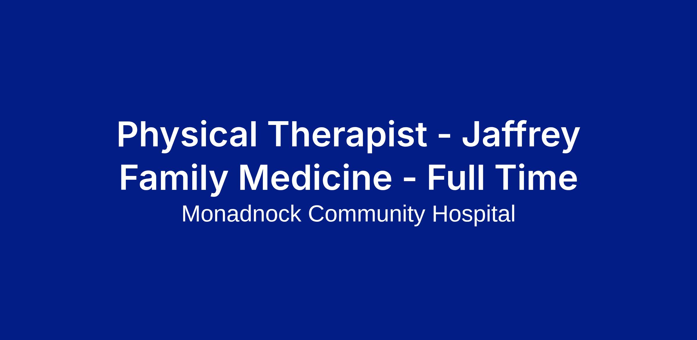 We are seeking a skilled Physical Therapist to join our team dedicated to helping patients achieve their goals and return to optimal function. Jaffrey Family Medicine Rehab Services is committed to providing exceptional, individualized patient care, with a unique focus on teamwork among clinicians to enhance skill development and advancement. If you are passionate about working with patients within a supportive and collaborative work environment, this is an excellent opportunity for you.