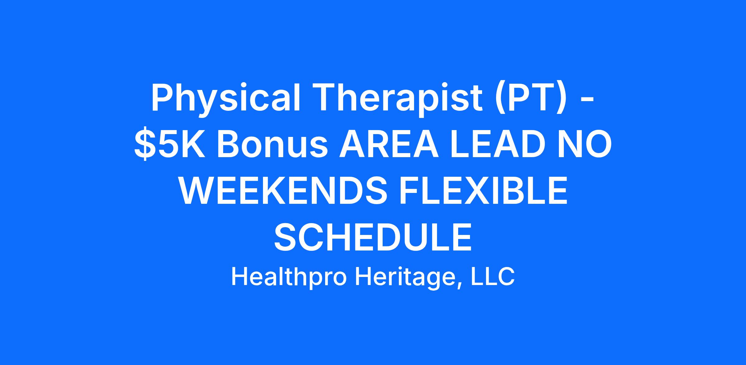 NOW HIRING FULL-TIME AREA LEAD PHYSICAL THERAPIST