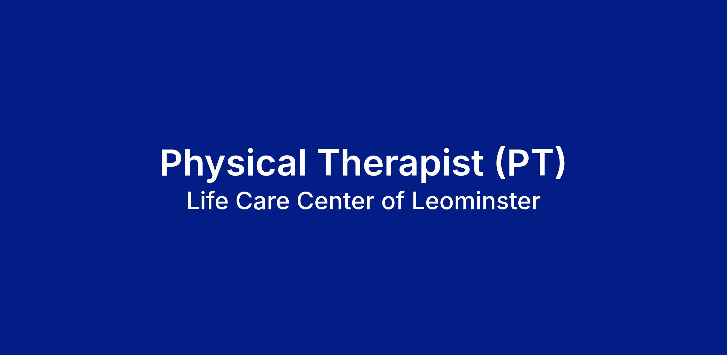 At Life Care Center of Leominster, we welcome new grads or many PTs with many years experience who are ready to grow in a collaborative, skilled nursing environment. Our team will support your transition with mentorship, hands-on training, and a patient-first culture.Why Join Us? $5,000 Sign-On Bonus Supportive new grad onboarding & mentorship Work with state-of-the-art therapy equipment Flexible scheduling to promote work-life balance Be part of a stable, experienced rehab team that wants you to succeedFull Benefits Package: Medical, dental, and vision insurance 401(k) with company match Paid time off (PTO) and holiday pay Continuing education assistance Licensure reimbursement Employee wellness and assistance programsWhat You'll Do: Evaluate patients and create personalized treatment plans Deliver physical therapy services focused on function, safety, and independence Collaborate with rehab, nursing, and medical teams Build strong patient relationships in a fast paced rehab environment