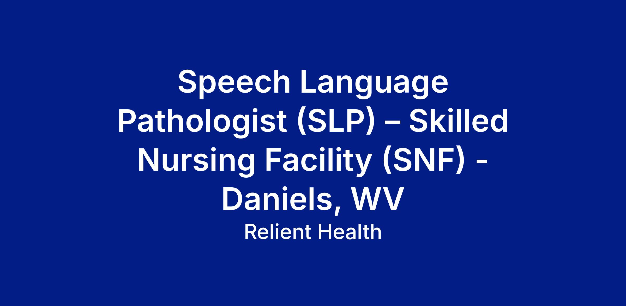 Speech Language Pathologist (SLP) – Skilled Nursing Facility (SNF) - Daniels, WV